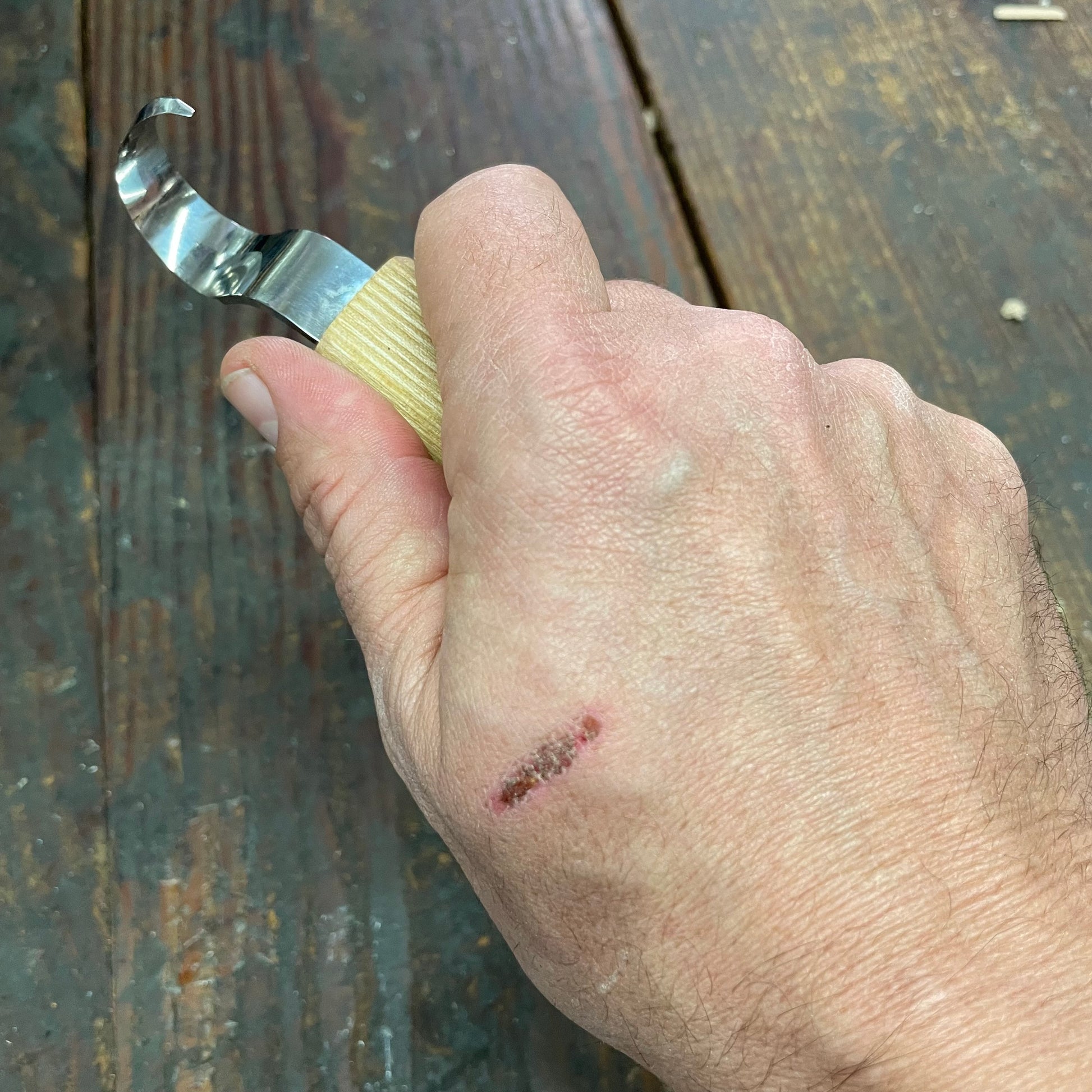 Spoon carving tools set is ideal for cutting spoons from wood. This set includes a whittling knife and a wood carving spoon hook knife. With the whittling knife, you give shape to the spoon, then with the hook knife, you cut out the spoon and smooth the wood out, and that's all, your spoon is ready.