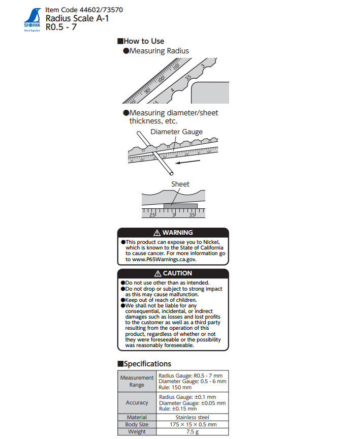 Shinwa Radius Scale A-1 (R 0.5-7mm) 44602 (73570)