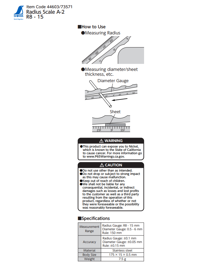 Measures radius, length and diameter / thickness.
