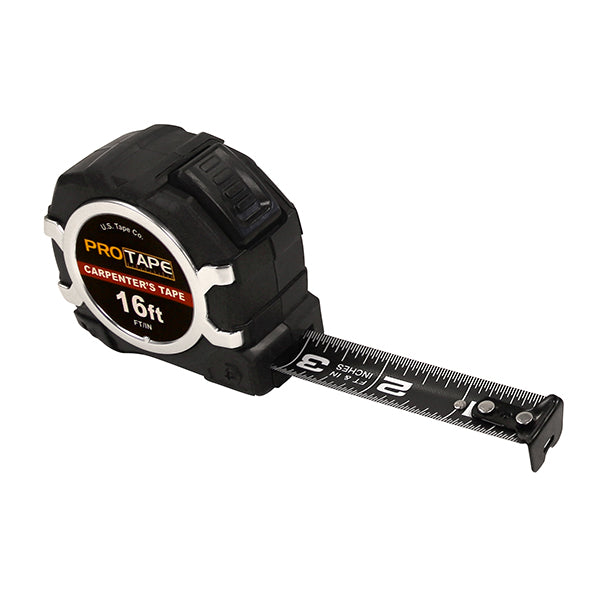 The X Series Carpenters ProTapes have a rugged chromed plastic body inside a protective, comfortable rubber grip casing, and a strong push button lock. The Carpenters models feature a high contrast black blade with white print that is double-side printed with a vertical-read scale on back.